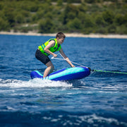 El Jobe Shark Trainer Towable 1P es el compañero ideal para que los más pequeños se inicien en el ski acuático de forma segura y divertida. Con un diseño amigable en forma de tiburón y colores llamativos, este ski inflable brinda estabilidad y confianza a los niños mientras aprenden a deslizarse sobre el agua. Su estructura de doble costura y materiales resistentes garantizan durabilidad y seguridad en cada uso.