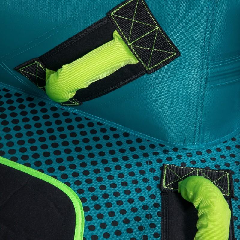 La Jobe Arrastrable Rodeo 3 Personas es la elección perfecta para quienes buscan una experiencia emocionante y segura en el agua. Con capacidad para hasta tres personas, su diseño robusto y moderno garantiza diversión para todos. Fabricada con una funda de nylon 840 Denier de doble costura, este arrastrable está construido para resistir las exigencias del agua. Sus 8 asas con protectores de neopreno ofrecen un agarre cómodo y seguro, mientras que la válvula Boston unidireccional permite un inflado y desinflado rápidos y sencillos. Además, su sistema de conexión rápida facilita el remolque sin complicaciones. Ideal para disfrutar de momentos inolvidables con amigos o familiares en el agua.