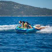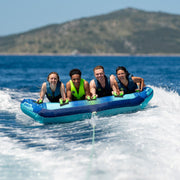 El Arrastrable Airstream 4 Personas Jobe es diversión a lo grande. Diseñado para compartir con familia o amigos, ofrece espacio cómodo y seguro para cuatro personas, con asas acolchadas estratégicamente ubicadas para resistir cada salto, curva y aceleración. Su forma aerodinámica y base reforzada garantizan un deslizamiento rápido y estable, transformando cada salida en una verdadera montaña rusa acuática.
