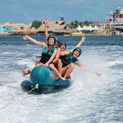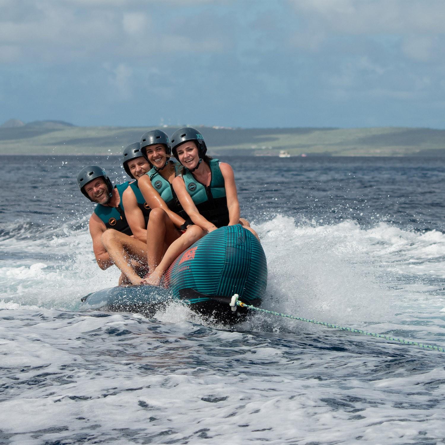 El arrastrable Chaser 4P de Jobe es el clásico que nunca falla: un banano para cuatro personas que convierte cualquier día en el agua en un momento inolvidable. Su diseño alargado permite que todos vayan en fila, agarrados fuerte de las asas acolchadas, listos para una tirada que puede ser muy adrenalinica.